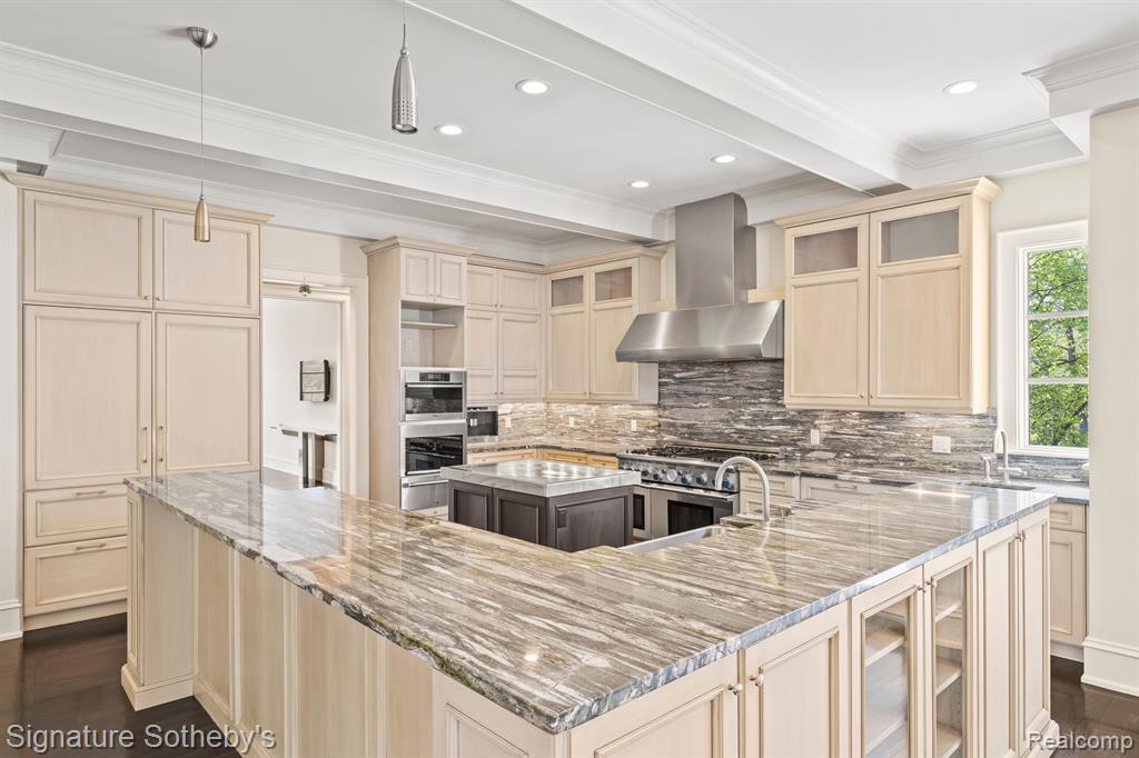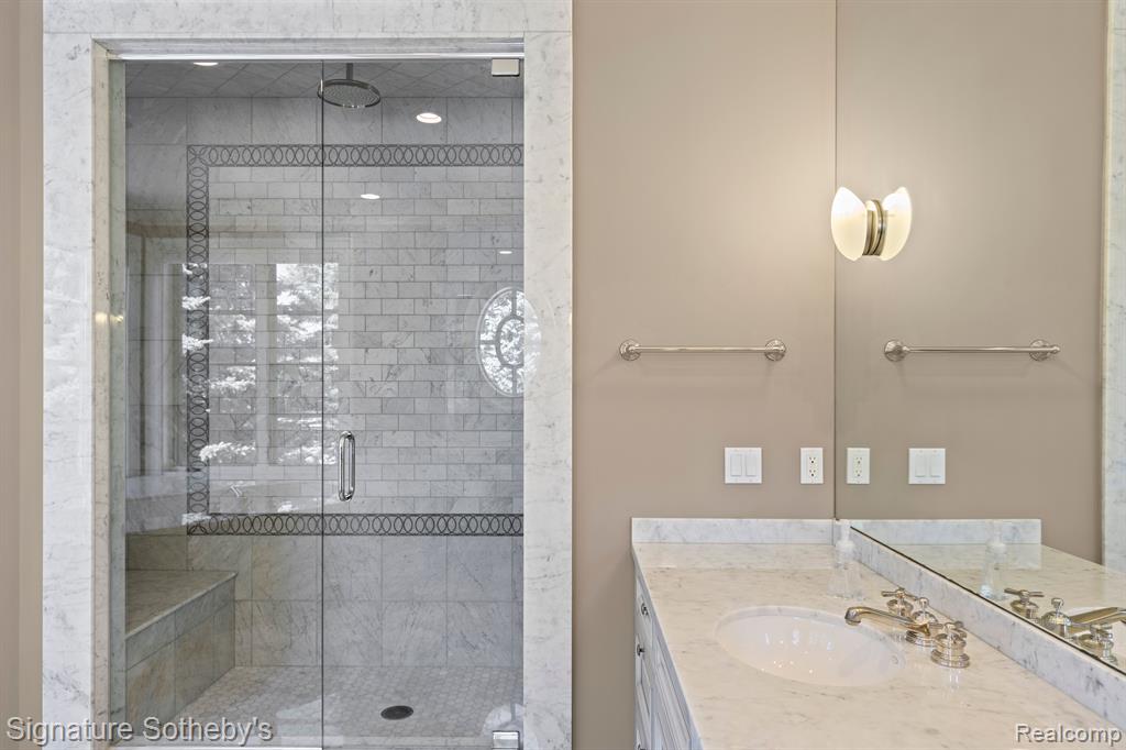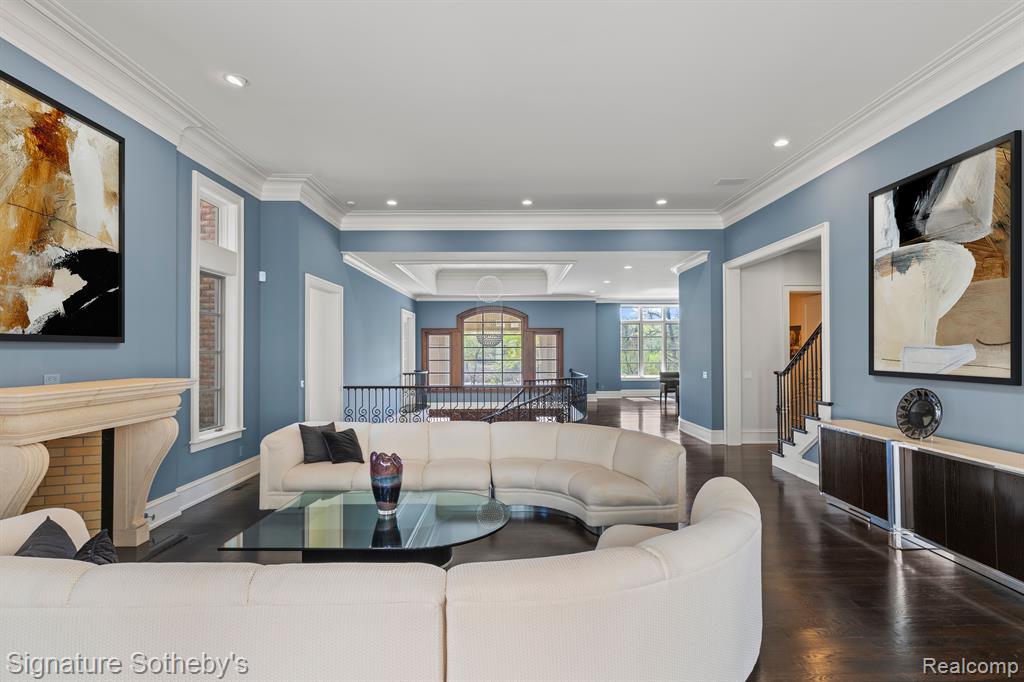 Set on a secluded, wooded site among some of the area's most distinguished estates, this custom 8,819 sq ft residence offers 5 bedrooms, 8.3 bathrooms, and a lifestyle defined by privacy, design, and functionality. Built by TSA, the home revolves around a rare open-air courtyard—creating a striking indoor-outdoor connection rarely seen in traditional layouts. The property showcases manicured grounds, a grand entrance, and multiple outdoor living spaces—including a stone courtyard, expansive upper-level terrace, and built-in spa—designed for both elegant entertaining and serene everyday living. The heart of the home is a chef’s kitchen outfitted with Thermador appliances, an oversized island with seating, and richly detailed custom cabinetry. It seamlessly flows into the main living and dining areas, where oversized windows and French doors provide a visual connection to the tranquil setting. The expansive primary suite is a private retreat, complete with a fireplace, two marble bathrooms, and two walk-in closets with dedicated dressing areas. Four additional bedroom suites, including a private au-pair/in-law apartment accessed by a separate staircase, ensure comfort and flexibility for a range of living arrangements. Work-from-home needs are met with dual private offices, while the lower level is built for entertaining—featuring a state-of-the-art theater, full bar, game room, and spacious great room with a dedicated piano platform. A 3-stop elevator provides seamless access to all levels of the home. Additional amenities include a private gym, steam shower, sauna, and integrated Control4 smart home technology. Every detail of this one-of-a-kind estate reflects an uncompromising approach to privacy, comfort, and design. |